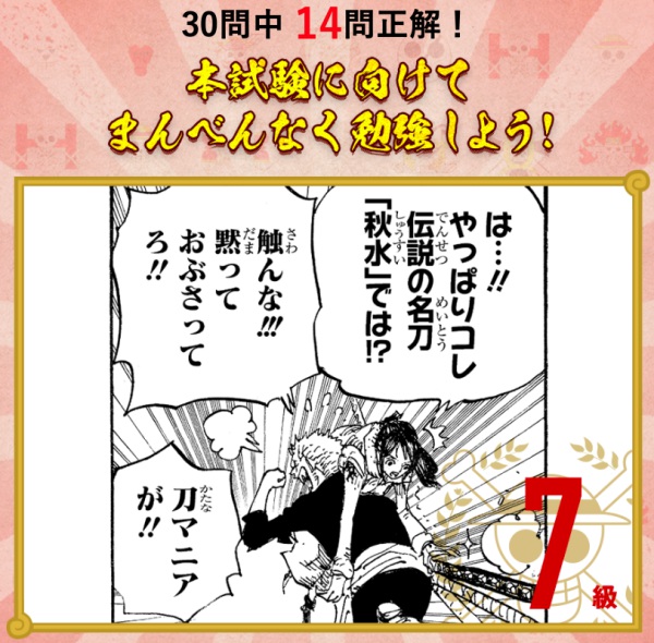ワンピース全国一斉試験の模試は何問正解で何級に ナレッジキング決定戦 One Piece 悪魔の実とかのindex
